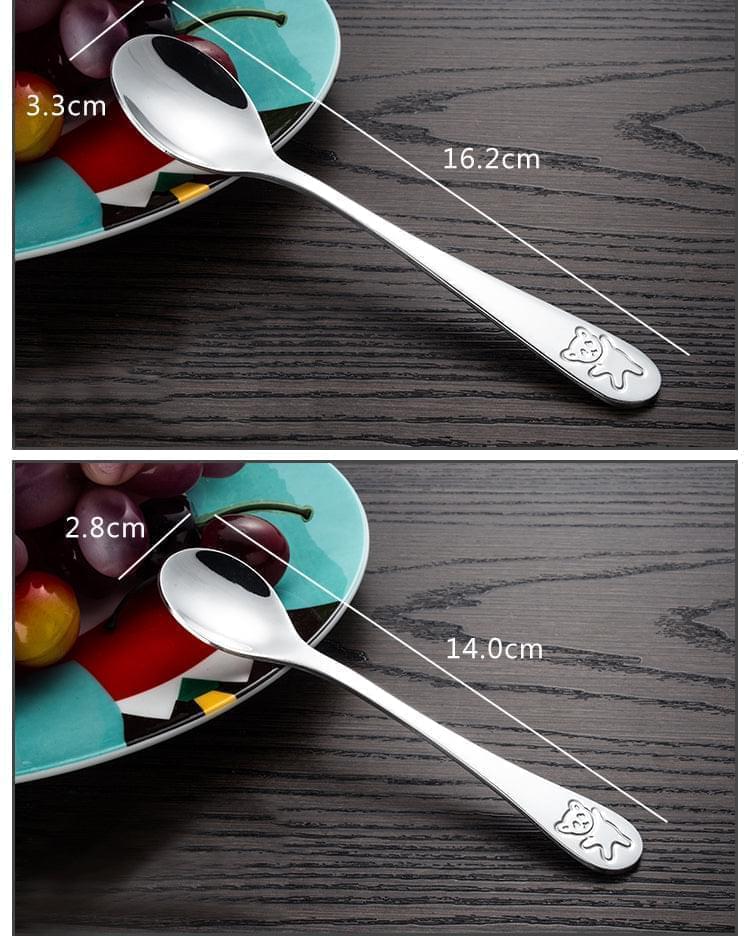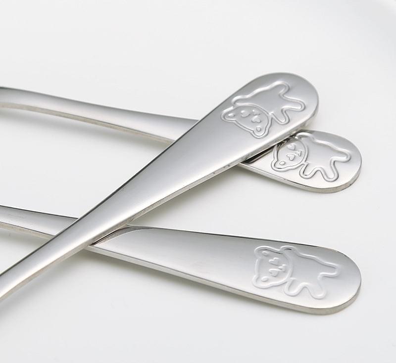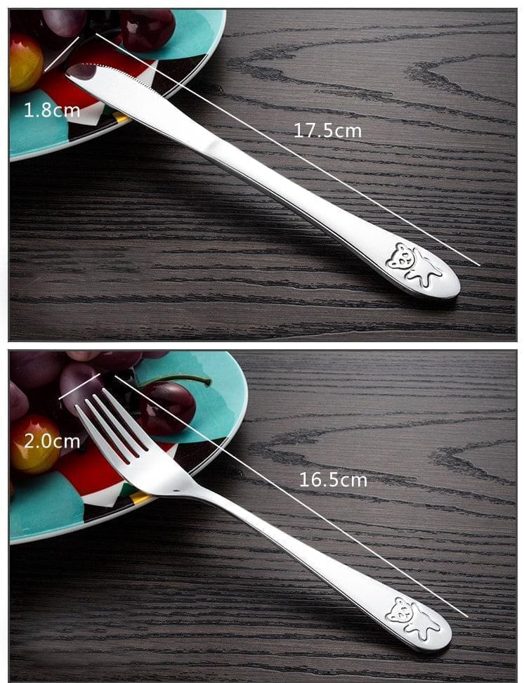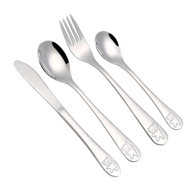 Add a little fun to mealtimes with this cute children's cutleryย set.ย This polished smooth cutlery set features embossed handles with sweet panda characters.