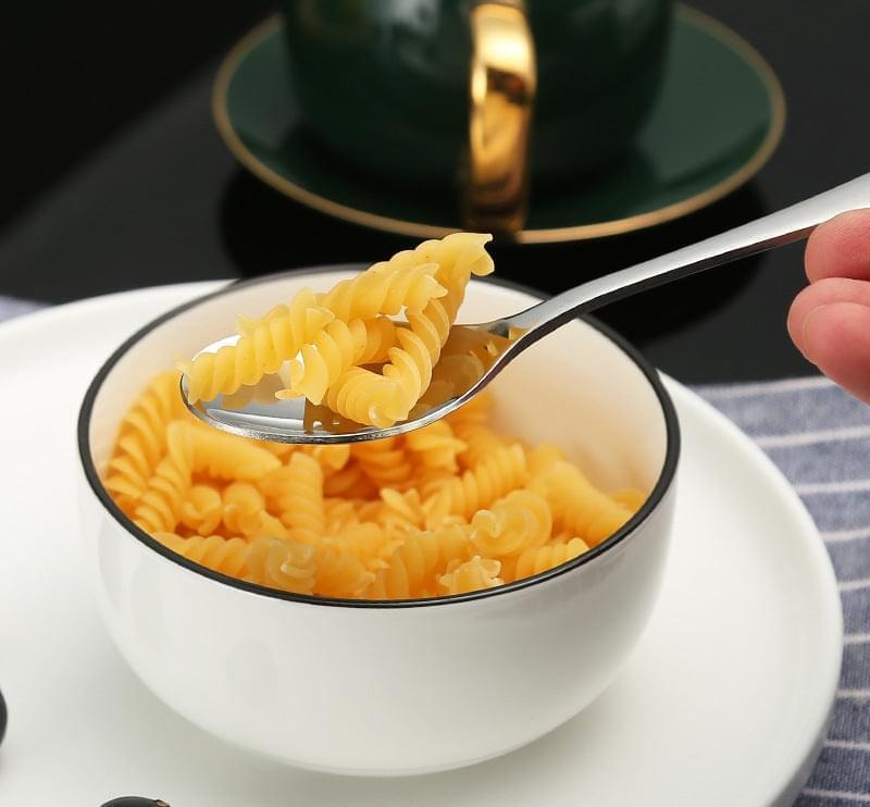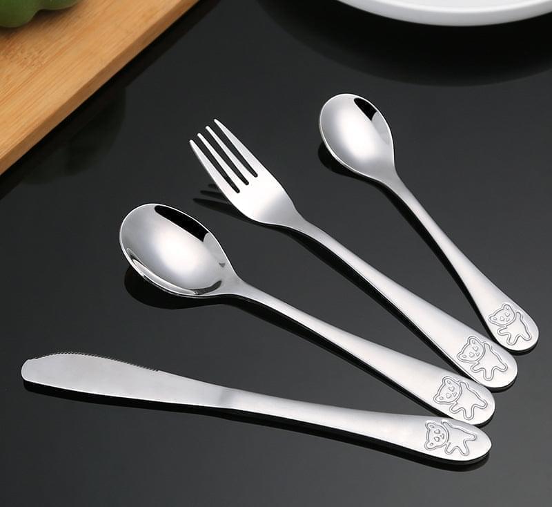 Includes a knife, fork, spoon and teaspoon that are made fromย the highest quality, food-grade, dishwasher-safe stainless steel.ย