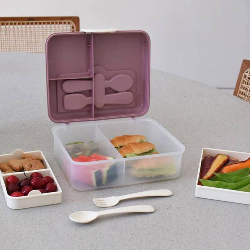 - It comes with a matching integrated spoon and fork, with a separate compartment in the lid